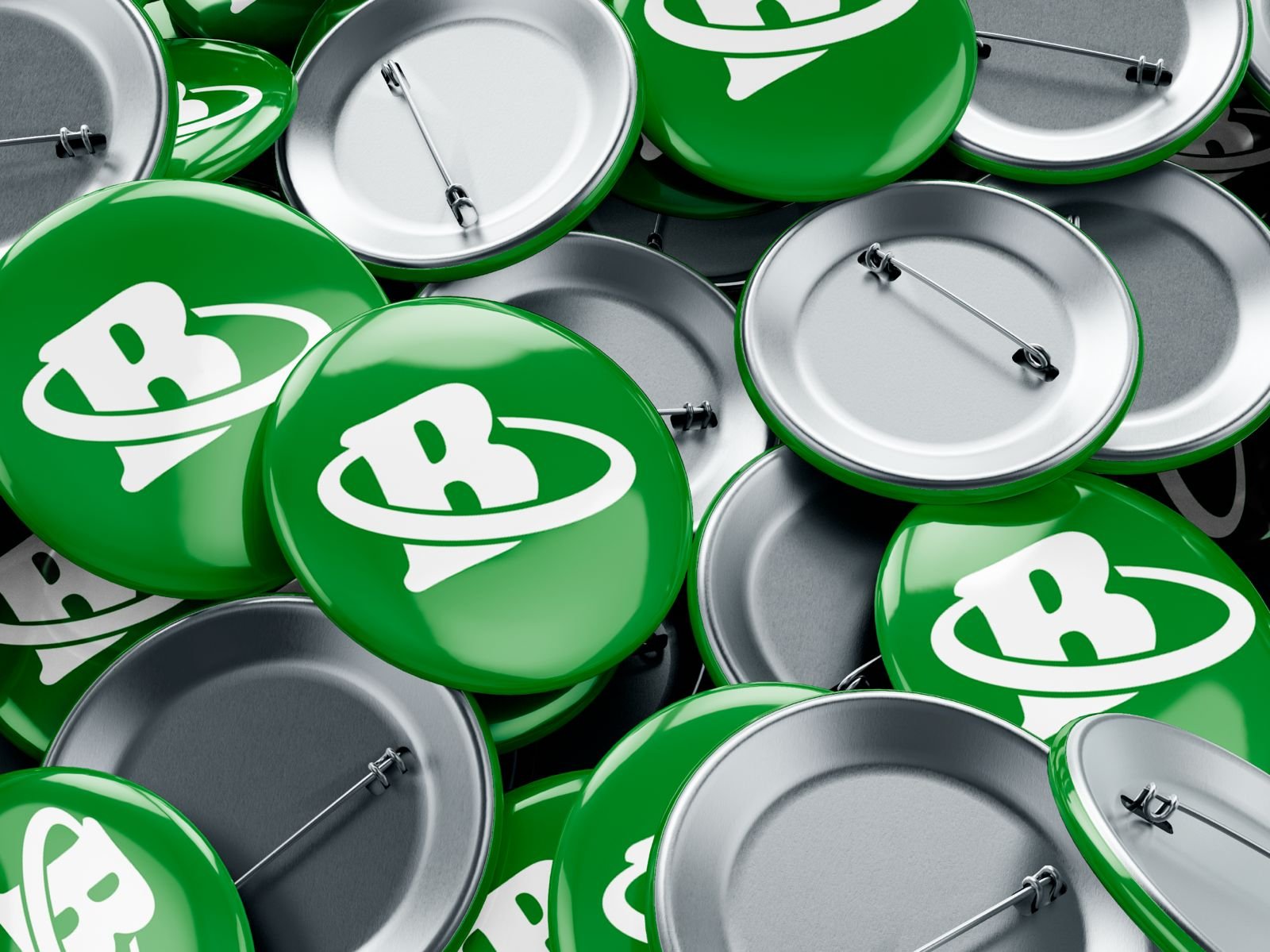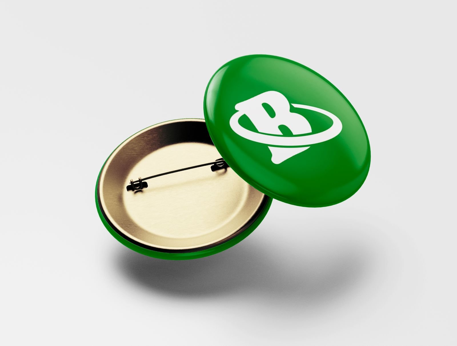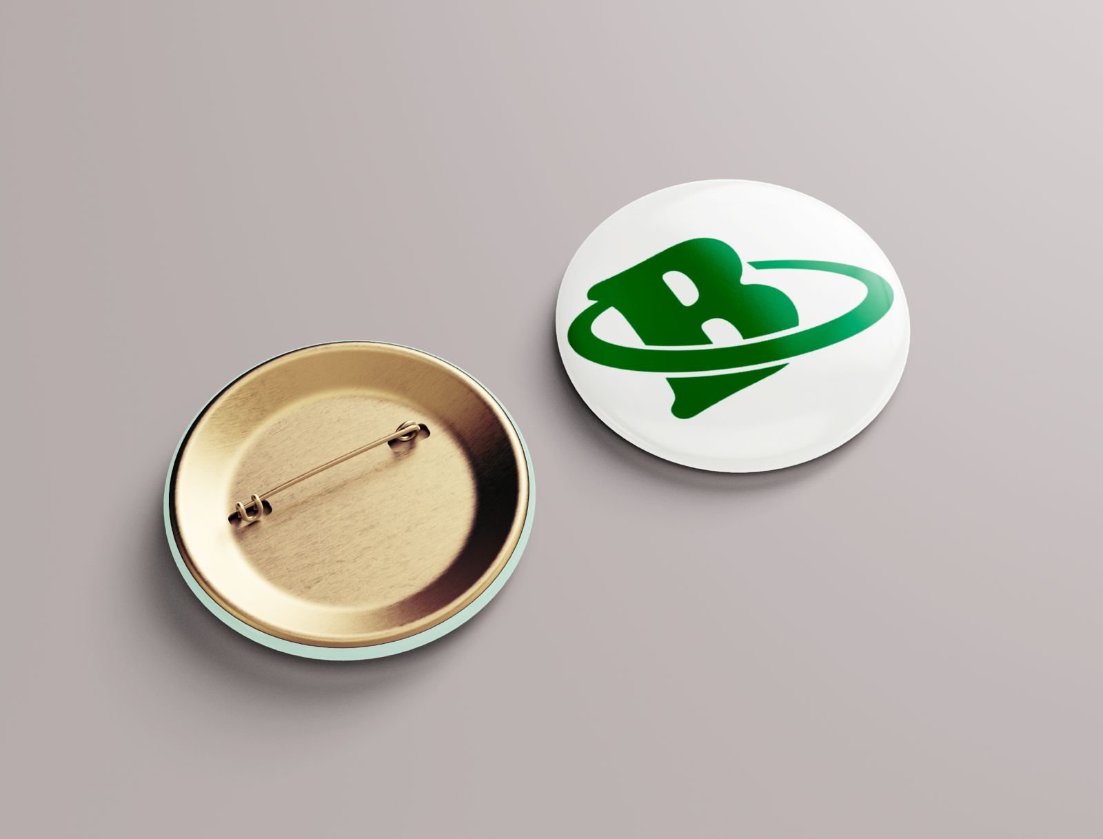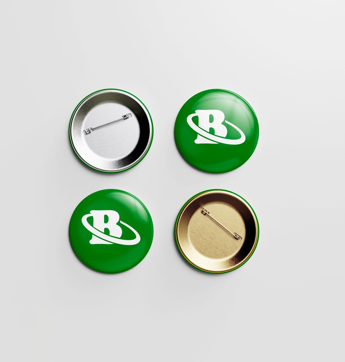 Conjunto de pins de 25mm com parte da frente metálica, parte de trás em aro metálico e pin em metal mais protectores de pins.